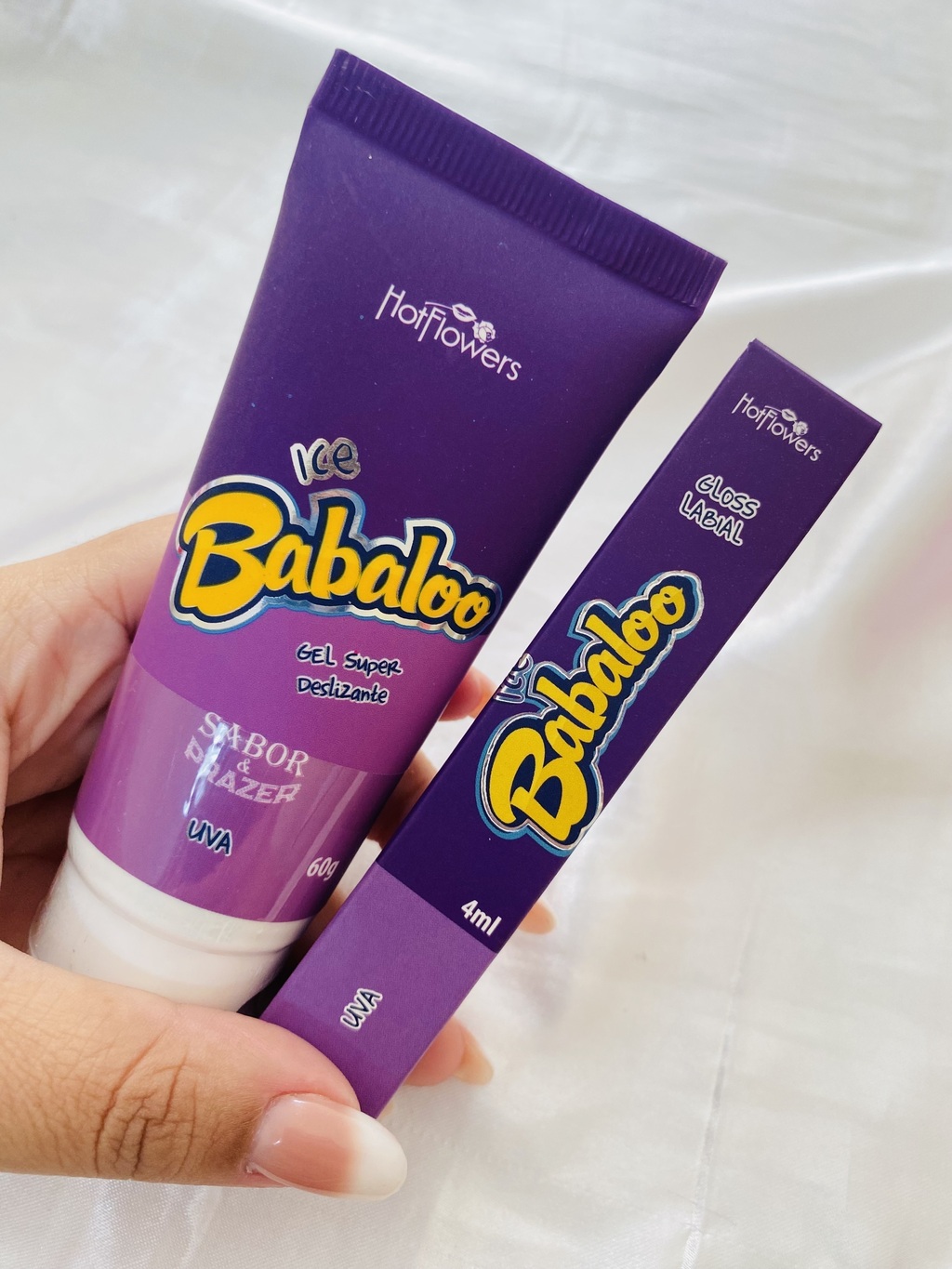 E vai também com um lubrificante super deslizante que além de lubrificar dar sensação de geladinho e tem um delicioso sabor de uva que também pode ser usado no oral